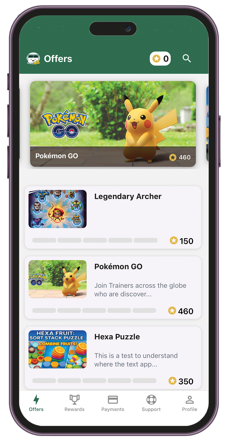 and select one of the many games availableComplete the challenges as explained in the game view and accumulate coins.Play &